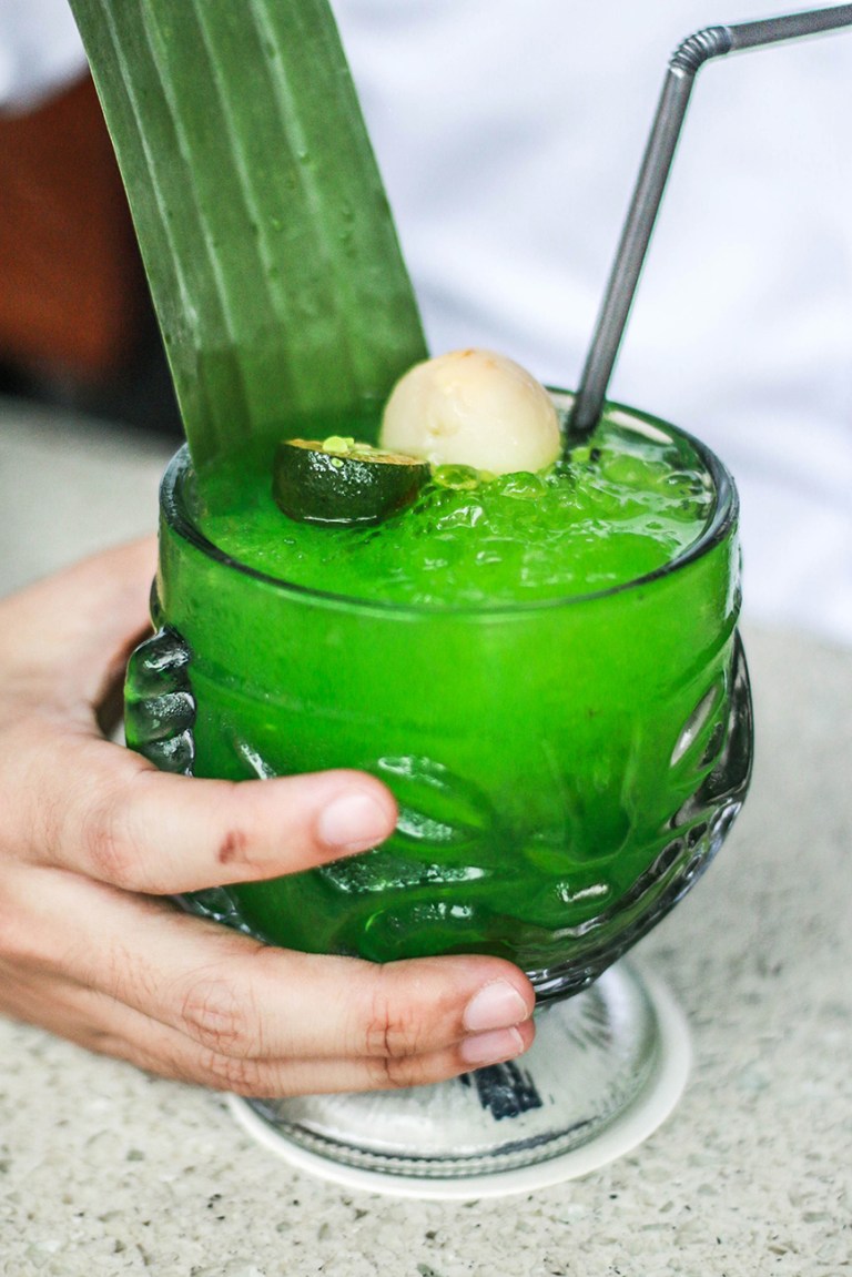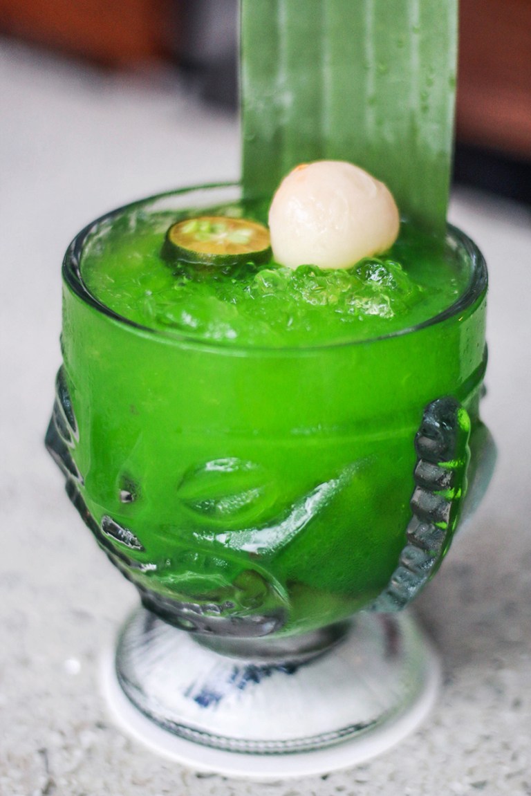 For something that brings to mind Asian flavors, try the Bungalow Boogaloo—a sweet cocktail made of watermelon gin, lychee and cucumber juice, calamansi syrup, and pandan essence. The fruit-infused base makes for a light drink, while the rest of the ingredients add a bit of tartness and a load of sweetness, creating what almost feels like a liquid dessert.