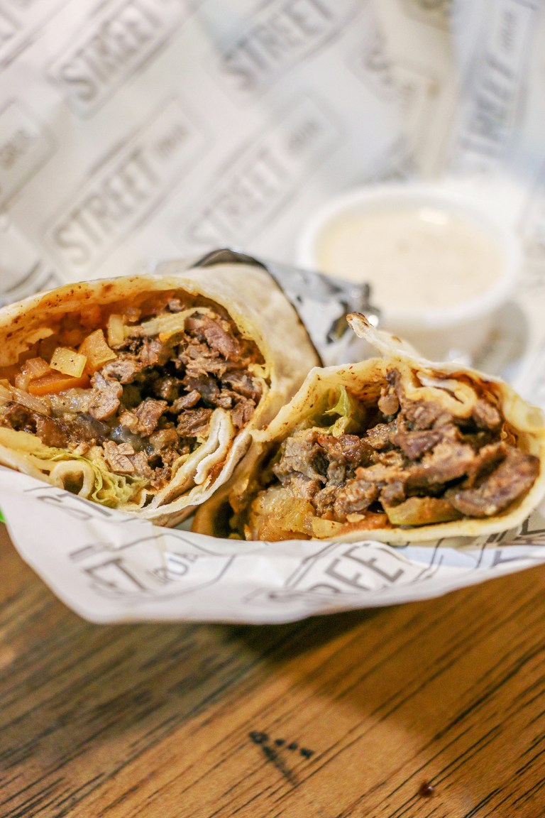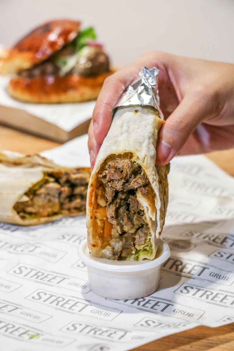 The next thing we got was their Rib Eye Shawarma Wrap. They wrapped the rib eye steak in homemade pita with Greek salsa, lettuce, and yogurt sauce. Since we love heat, we had them put some spicy sauce to the mix. To add more personality to the dish, we dipped the shawarma in their garlic mayo sauce.