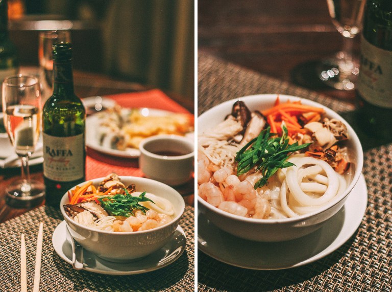 Keeping up with the Asian theme, we got ourselves some piping hot Seafood Pho from Seven Corners’s create-your-own-noodle-soup station. We asked the chef to throw in shrimps, squids, vegetables, and 3 types of mushrooms in the bowl along with some flat rice noodles. Surprisingly, when we paired our soup with Raffa, it felt refreshing.