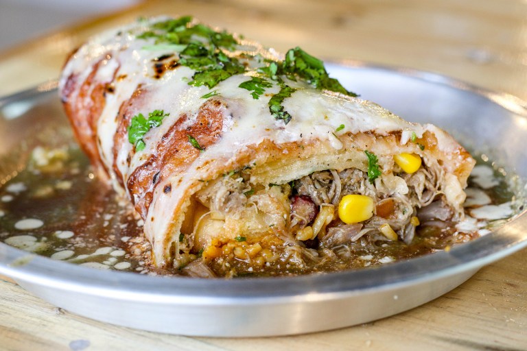 True story: We love Mexican food. We love it so much that there was a time when we’d make it a point to eat in different Mexican food joints being run by Mexicans at least thrice a week the last time we travelled in the US. Not to mention the frequent lunches and dinners we enjoyed that our Mexican neighbors hosted. That’s why we got excited when we saw El Bigotilyo’s Mojado. Their massive wet burrito is deep-fried chimichanga-style smothered with salsa roja and salsa verde, topped with torched mozzarella and cheddar cheese. One bite of their wet burrito made us dance in our seats. The flavors just exploded in our mouths. We can appropriately say that El Bigotilyo‘s Mojado was bomb. No wonder it’s their signature dish. Had we not ordered food from other stalls, we’d easily wipe the plate clean!