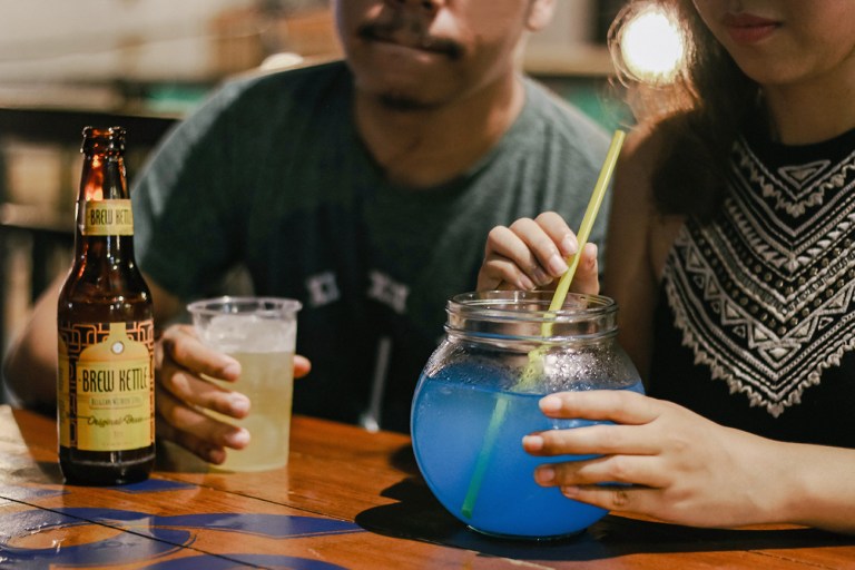 When you’re thirsty, Gulp Station has your back. They sell drinks from iced teas to lemonades to juices to local beers to imported beers to cocktails. One of the things that got us saying ‘whoa’ was their Blue Lemonade that’s in a bubble gum glass container. They figured having tall glasses might not cut it for the super thirsty so they decided to go short but stout. Their regular-sized Blue Lemonade is good for 1 to 2 people. We also ordered their large Red Iced Tea that’s good for 3 to 4 people and looks like a sink!