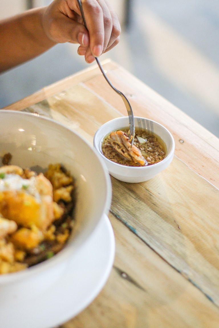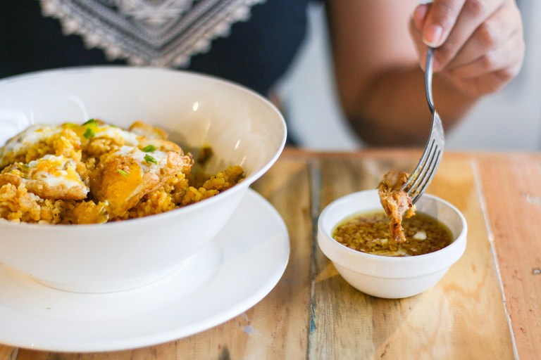 This is one food item that we can’t wait to get our hands on again. This is called Arroz Con Pollo. Imagine a deconstructed version of chicken arroz caldo but still with all the bells and whistles. One would think that it’s just a simple sautéed chicken that came with fried rice, egg, and fish sauce. But as the old cliché goes “don’t judge a book by its cover”, we definitely shouldn’t pass judgement on this one yet just by the way it looks. The rice is cooked in arroz caldo broth incorporating all its flavorful goodness making the rice taste like you are seriously eating an arroz caldo. The dipping sauce is a patis-calamansi vinaigrette which has ginger and garlic bits to make the flavors bolder and sharper. There’s a rhyme, rhythm, and reason in eating this dish. Let’s start with the rhyme and rhythm— 1) break the egg on top of the rice to enjoy some egg porn; 2) mix the egg with the rice; 3) get some pieces of chicken; 4) dip the chicken in the sauce; 5) eat it followed with rice or eat it together with the rice. Very simple instructions. Now for the reason why you need to eat and try Maceo Maceo‘s Arroz Con Pollo: because it’s one of the best things we’ve tasted! Amongst all the rice dishes we ate in The Lokal Foodpark, we emptied the bowl up to the last grain of rice with this one.