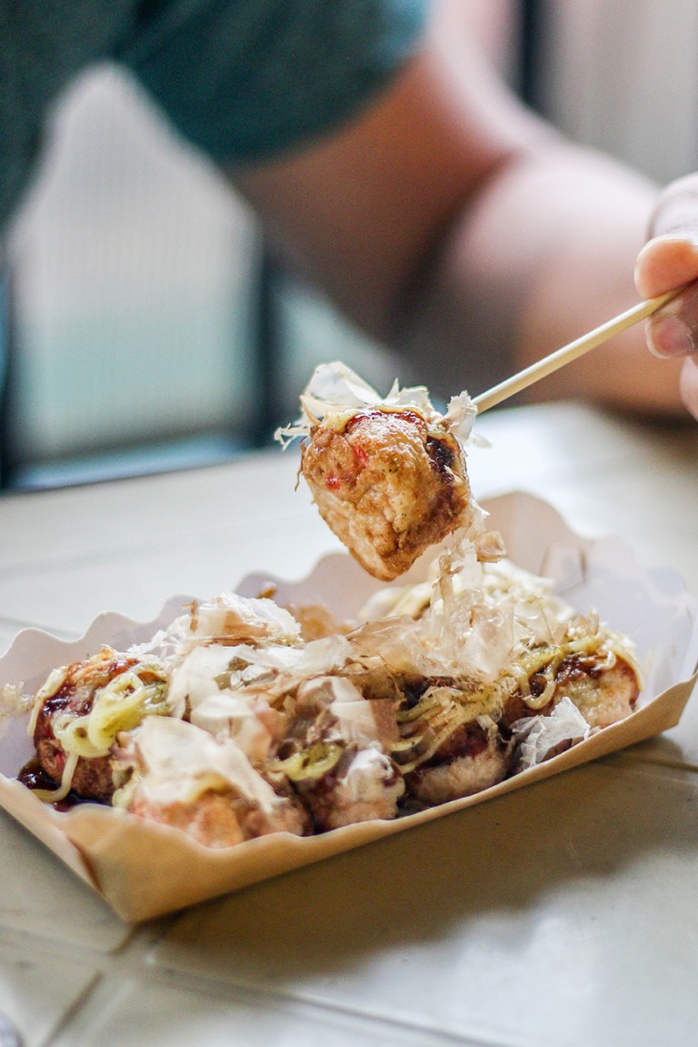 Next stop was Shuma Gorath. Just by the name itself, we couldn’t help but be intrigued on what they offer. Allow us to geek out a little bit here. As far as we know, Shuma Gorath is a fictional character which first appeared in comic books published by Marvel Comics and is considered the ruler of a hundred alternate universes. Shuma Gorath has one big eye in the middle (more like Mike Wazowski of Monsters Inc.) and has about 6-8 green tentacles (the drawings vary). So when we saw that they’re selling Takoyaki, we somehow had an idea on the origin of the store’s name. Shuma Gorath looks like an octopus and Takoyaki is a Japanese street food which means octopus balls. We appreciate the fact that Shuma Gorath uses real octopus and not squid. By the way, they also offer Matcha Iced Tea Latte which we think tastes better than some of the matcha drinks we got from well-known cafes.