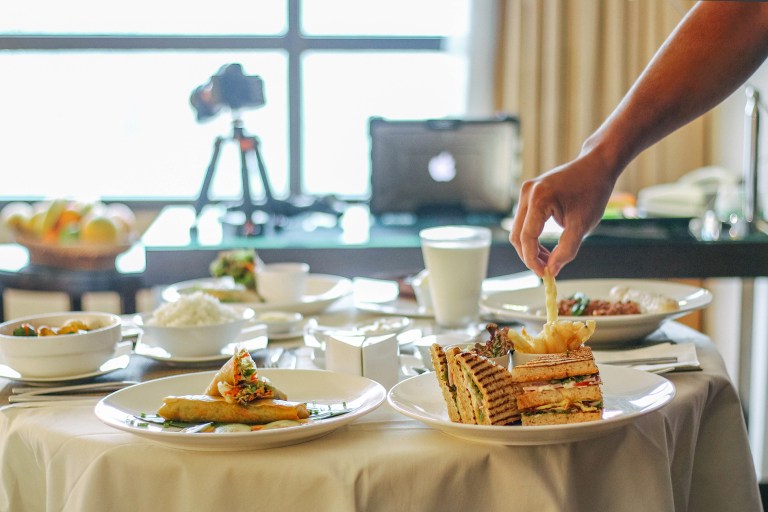 For the few times we left our room, we found ourselves in Glorietta Mall which is just literally beside the hotel. They even built a special entryway to the mall from just outside the hotel lobby which was very convenient. Since we were still on our Eat. Sleep. Repeat mission, we made sure to comply on our last day at the hotel. Remembering the good food experience we got from our In-Room Breakfast, we decided to try their In-Room Dining at 2 o’ clock in the morning. We woke up hungry and naturally, we called Room Service to take care of us. Holiday Inn and Suites Makati In-Room Dining operates 24/7. That means, they can feed you any time of the day. We decided to get a Club Sandwich, Pasta Bolognese, Thai Red Curry, Vietnamese Fresh Spring Rolls, Fried Vegetable Spring Rolls, Chocolate Cake With Ice Cream, coffee, and a glass of milk. We’re glad to report that our orders took 20 minutes to arrive and the food were served at the right temperatures.