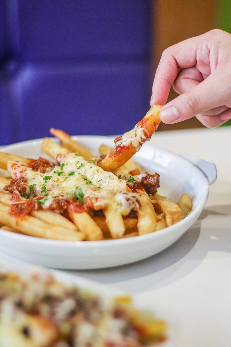 You won’t go wrong with this pairing. The layers of nachos are loaded with ground meat, tomato salsa, lettuce, and grated cheese. While the perfectly cooked fries are topped with the same delicious mix but the lettuce. The savory flavors of both appetizers go wonderfully well with the sweet Horlicks Milk Tea. Great pairing, for sure.