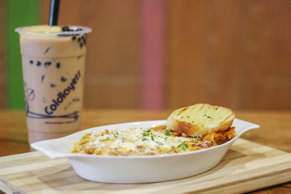 This is a classic pairing for us. The lasagna with béchamel sauce topped with cheddar and parmesan spell creaminess, slight saltiness, and umami from the savory meat. Pair it with the touch of caramel flavor from the wintermelon and deep, strong taste from the black tea, you’ll get a classic pairing that will keep you coming back to enjoy them all over again. Oh, and we had some pudding added into the tea which made it more tasty to drink.