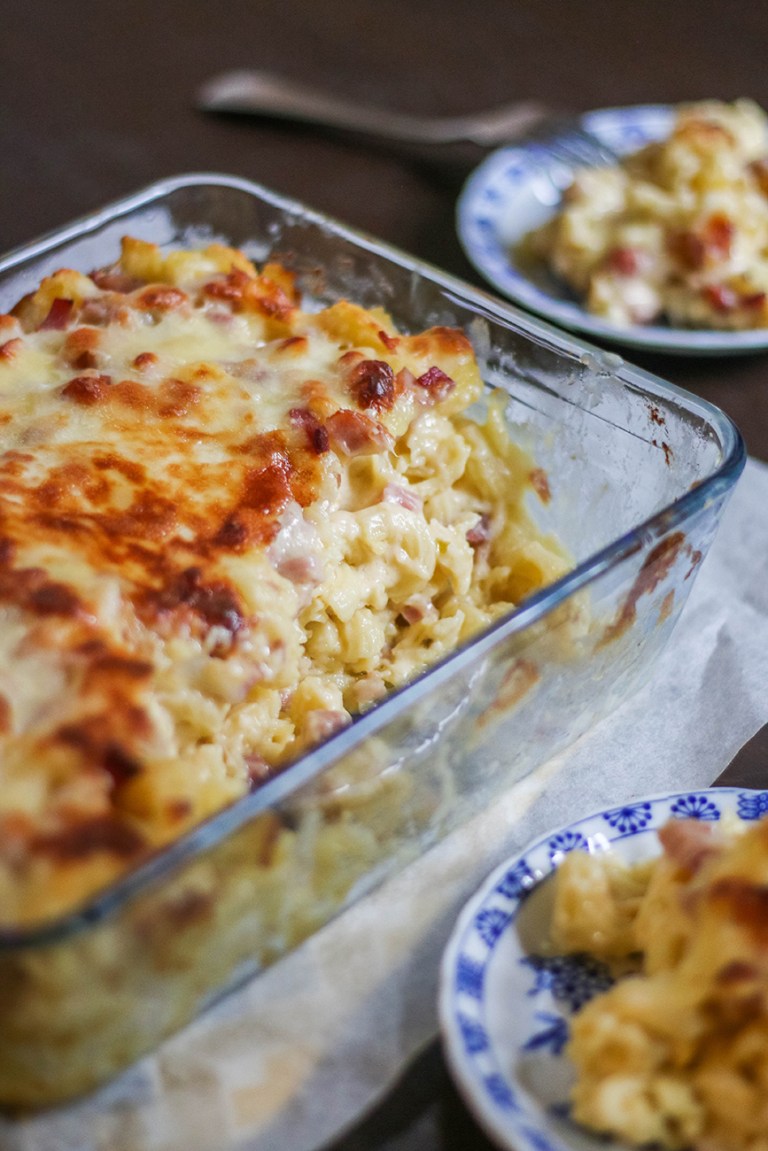- Drizzle the rest of The Plaza Premium Baked Ham then add a layer of the cheese mix.