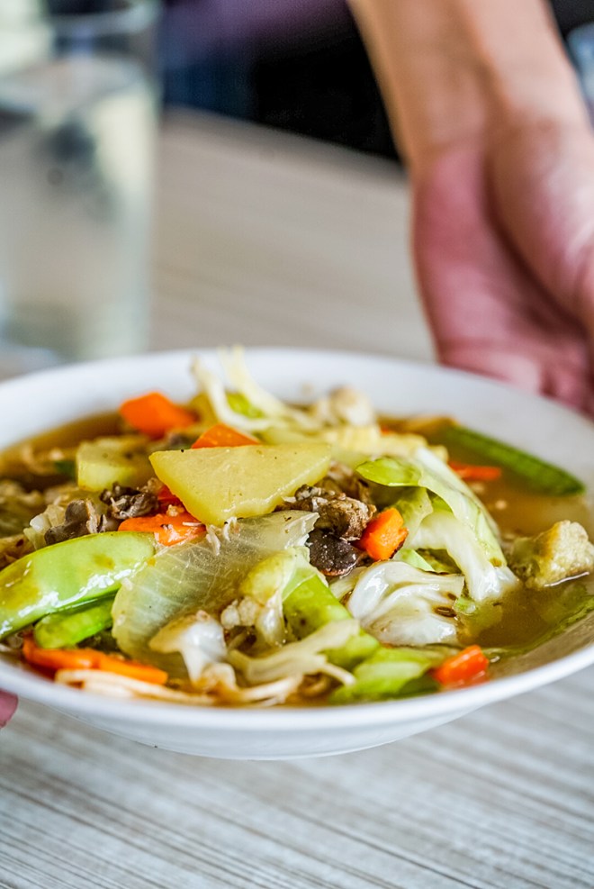 Batil Patung is a miki, or fresh egg noodle, dish that gets its name from the manner eggs are incorporated into the noodles. The word batil came from the Spanish word batir (to beat), for the beaten egg in the ‘sauce’ that is served together with the dish, while patong, or patung in Ibanag, is to put on top of, for the poached egg that is placed on top of the pancit. The springy miki cooked in carabao bone broth is then topped with sautéed ground carabao meat, pork liver, crunchy mixed vegetables, and the occasional chorizo and carajay, a type of super crispy pork belly. Tuguegaraoans have always been in love with pancit specifically miki guisado, but in the 70’s, Teyo’s Panciteria invented the pancit batil patung that we know today.